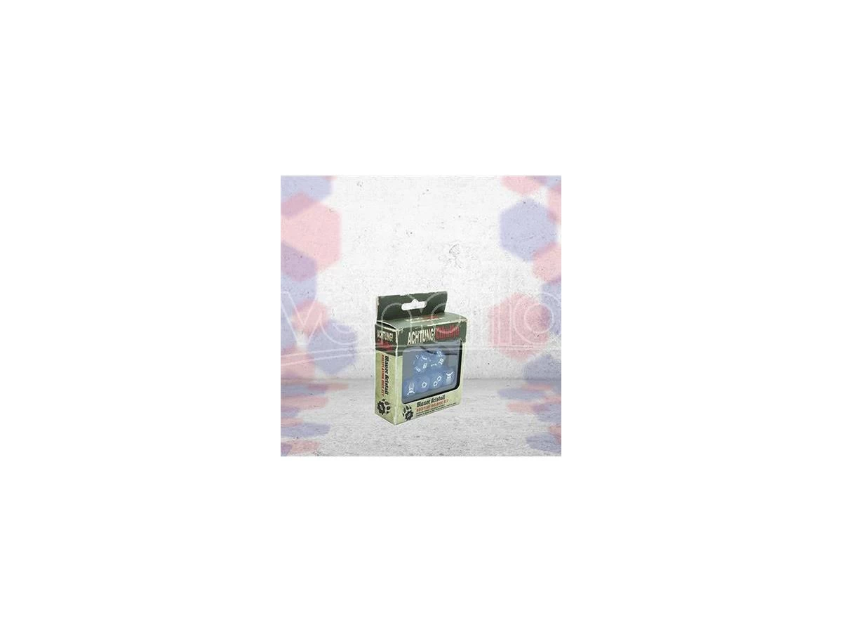 Progettati sotto la supervisione personale di Mina Wolff, il capo dei Lupi della Notte, tira questi dadi dal look traslucido in cristallo blu con numerazione bianca per superare le tue prove di abilità e determinare il tuo destino, mentre combatti le forze dell’occulto nazista e la malefica influenza dei Miti nella Guerra Segreta di Achtung! Cthulhu 2d20.