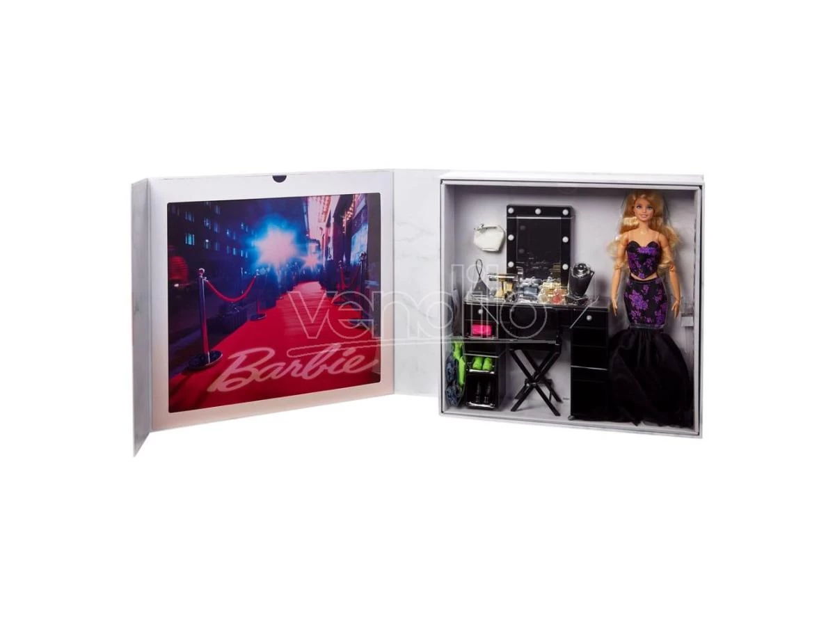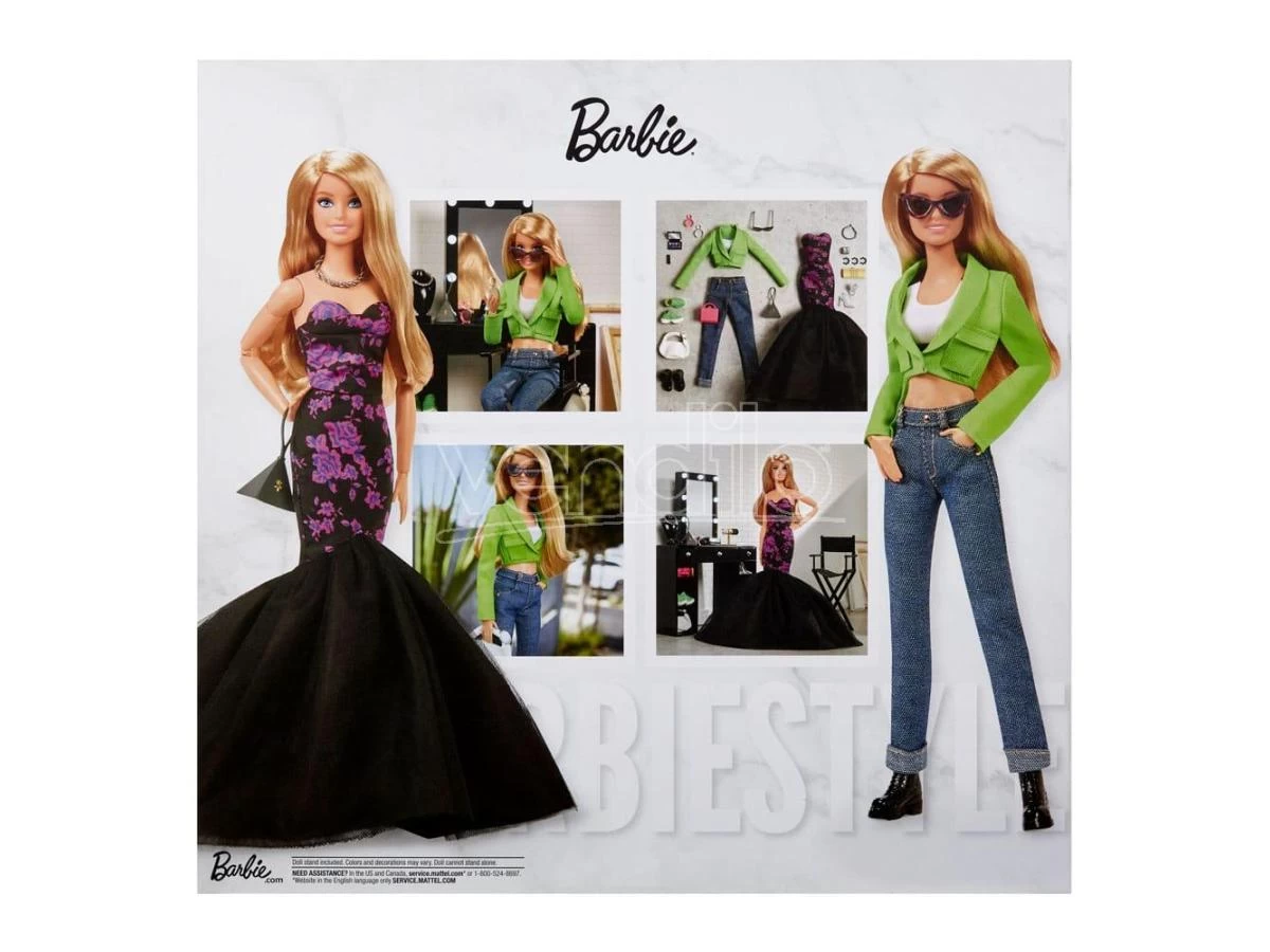 The latest installment of the @BarbieStyle fashion doll collection brings fans behind the scenes to style Barbie doll in the @BarbieStyle Studio, featuring a chair and vanity with a light-up mirror, plus drawers and shelving to display premium, on-trend accessories. Dress Barbie doll for any occasion with a fitted white top, cropped jacket and pair of jeans. Take her from day to night with a strapless gown featuring a gorgeous floral print and mermaid silhouette, and finish any look with included jewelry, three pairs of shoes, a clutch, four handbags and two pairs of sunglasses. Barbie doll features a fully posable Made to Move body, and packaging includes four backdrop inserts that allow fans to design their own photo-worthy moments. Doll cannot stand alone.