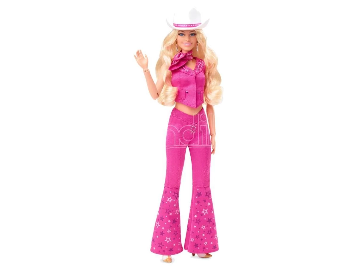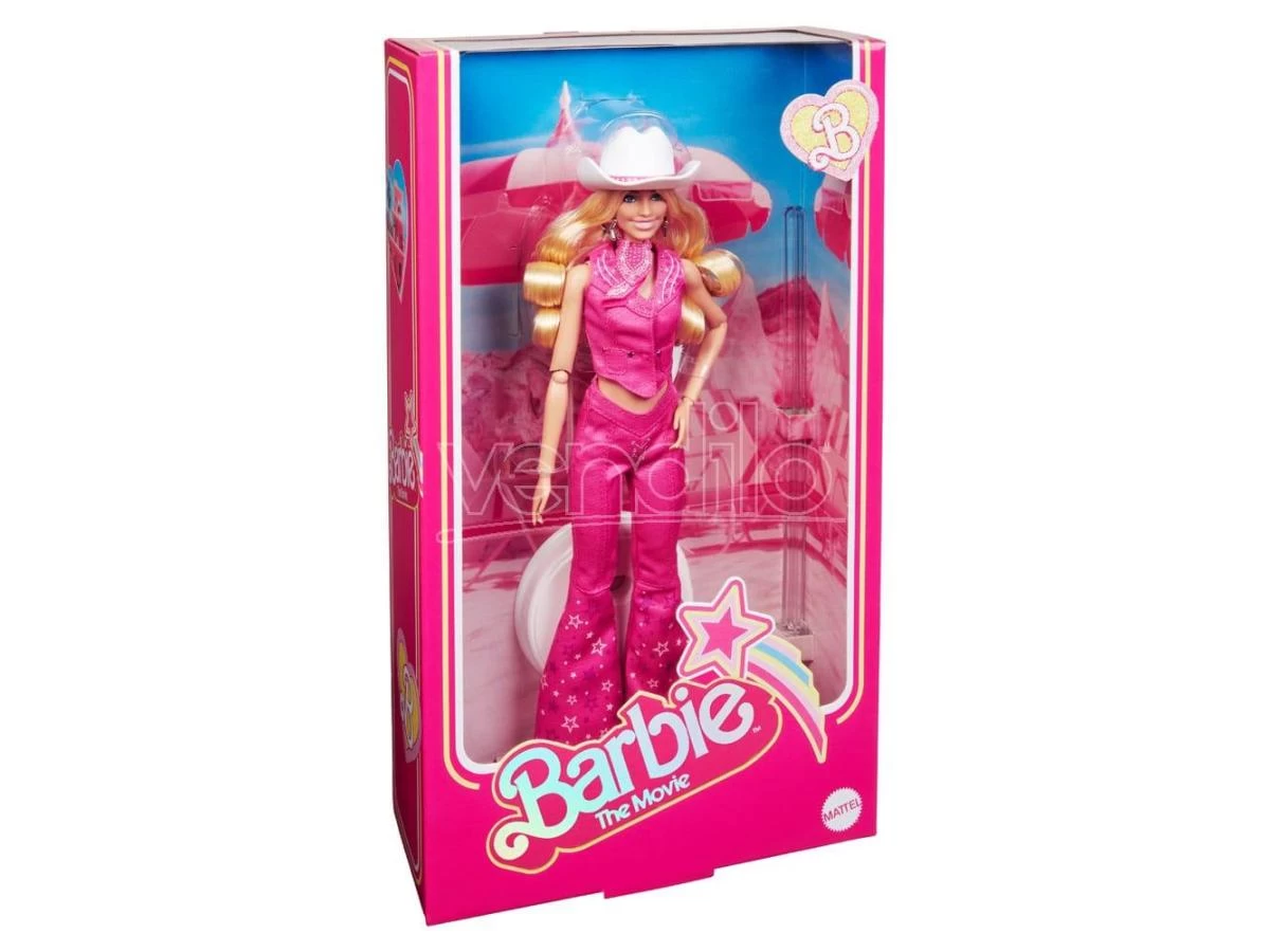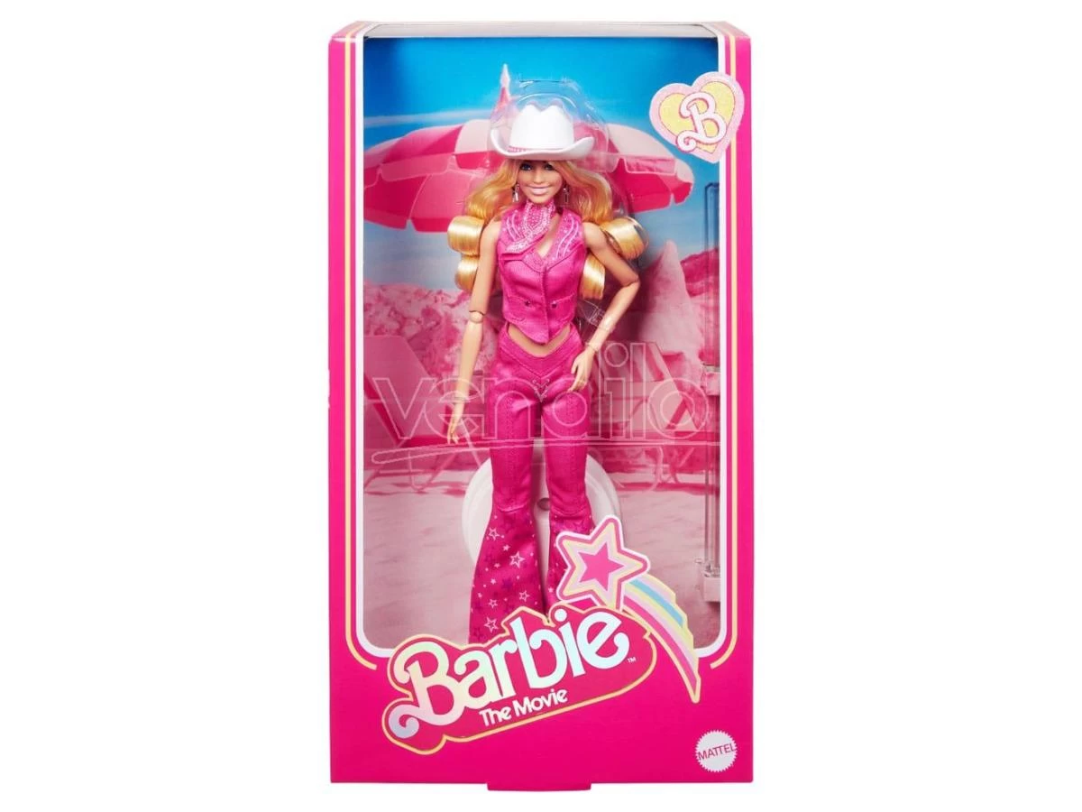 Saluti da Barbie Land! Questa bambola Barbie® collezionabile fa girare la testa con il suo look tutto rosa modellato sul vestito western di Barbie in Barbie™ The Movie. Indossa un giubbotto di jeans abbinato e jeans a zampa con un cappello da cowboy e stivali. A somiglianza di Margot Robbie nei panni di Barbie, è un ottimo regalo per fan e collezionisti! Supporto per bambole incluso. La bambola non può stare da sola. I colori e le decorazioni possono variare.