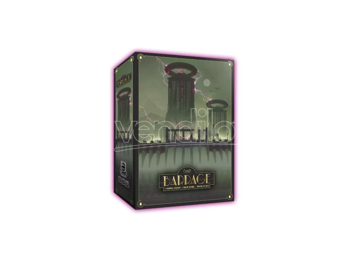 Barrage è un gioco di piazzamento lavoratori basato sulla meccanica del flusso dell’acqua.I giocatori si sfidano nel controllo energetico di un territorio costruendo maestose dighe, implementandole per accrescere la capacità di raccolta dell’acqua e la conseguente produzione energetica che dovrà poi essere trasportata e utilizzata grazie a turbine e a condotti.In una distopica belle époque, la rivoluzione industriale ha spinto il consumo di risorse fossili fino al loro completo esaurimento. Lo sviluppo tecnologico sembra oramai segnato, ma una nuova risorsa, pulita e inesauribile, accorre in aiuto dell’umanità : l’energia idroelettrica.Ogni giocatore rappresenta una delle compagnie internazionali che hanno messo a disposizione le loro risorse, la loro tecnica e i loro uomini migliori per portare dalle remote regioni alpine milioni di Kilowatt di energia idroelettica. Barrage include due nuove ed innovative meccaniche di gioco. La ruota di costruzione, su cui i giocatori dovranno lavorare per costruire, e i dislivelli d’acqua, che dovranno essere intercettati con le dighe.