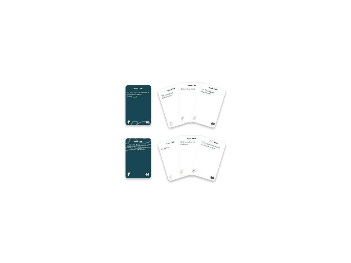 Un giocatore prende una carta domanda, la legge ad alta voce e gli altri giocatori scelgono tra le 11 carte risposta del proprio mazzo, quella che, collegata alla carta base, risulterebbe più divertente, assurda, apprezzabile. Quello stesso giocatore rilegge poi la carta domanda completandola con le carte risposta fornite dagli altri giocatori e attribuisce arbitrariamente un punto a quella che ritiene avere l’effetto migliore. Il ruolo di narratore passa così al vincitore del turno. Il giocatore che arriva per primo a 5 punti vince la partita.Tutto qua! Si assicurano grasse risate!
