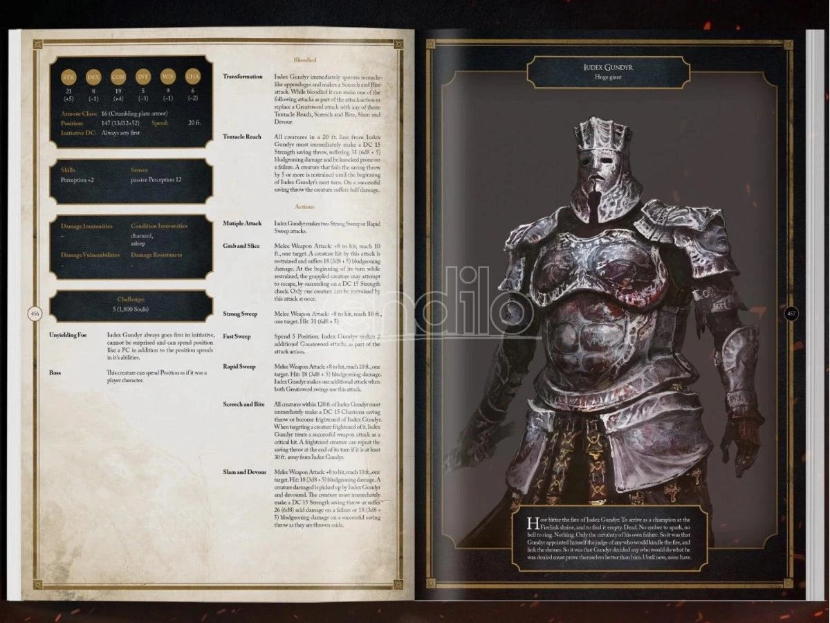 DARK SOULSTHE ROLE PLAYING GAMECome i videogiochi, DARK SOULS™: The Roleplaying Game è stato progettato per essere un’esperienza punitiva ma gratificante, in grado di appassionare sia i fan più accaniti che i giocatori di ruolo. Pochi ostacoli sono facilmente superabili. Ogni nemico è una sfida. I progressi sono conquistati a fatica. Morirete molte volte. Ma risorgerete anche con DARK SOULS™: The Roleplaying Game, basato sul sistema unico dei videogiochi che premia la forza di volontà e la perseveranza. Non siete soli. Oltre agli altri giocatori di ruolo, una serie di volti familiari è pronta ad assistervi. Impegnatevi in un’allegra cooperazione per sconfiggere i vostri nemici!Esplora una terra di ombre e fiamme dove abbondano cavità, demoni e creature abissali. Aprite un mondo fatiscente da esplorare con DARK SOULS™: The Roleplaying Game. All’interno c’è tutto il necessario per gestire incredibili campagne di gioco di ruolo. Le vostre decisioni. La vostra storia di DARK SOULS™.Regole complete della quinta edizione arricchite con le meccaniche tipiche di DARK SOULS™, progettate per campagne autentiche.10 nuove classi di personaggi su misura per la creazione di personaggi di DARK SOULS™, che includono nuove incredibili abilità, nuovi sinistri sfondi per i personaggi e molto altro ancora.Un nuovissimo sistema di magia completo di incantesimi devastanti, piromanzie e benedizioniCapitolo del Game Master ricco di suggerimenti e consigli per la gestione di giochi di ruolo che catturino lo spirito di DARK SOULS™, per coinvolgere i nuovi GM e aiutare i GM più esperti a gestire campagne autenticheUn bestiario completo che pullula di creature mortali di DARK SOULS™, tutte in attesa di porre fine alla vostra ricerca del bene, dal popolo dei funghi ai Signori del Cenerino.Il mondo in rovina di Lothric, che vi aspetta per essere esploratoOltre 500 pagine di contenuti per il gioco di ruolo di DARK SOULS™, per infinite ore di gioco!GIOCO COMPLETAMENTE IN INGLESE