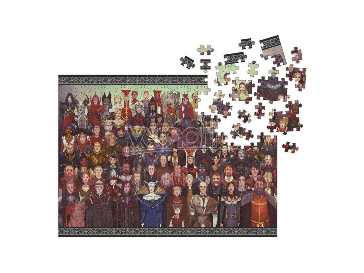 La serie Dragon Age è amata per il suo incredibile cast di personaggi diversi. Riscopri ogni storia d’amore in erba, compagno irriverente o minaccioso miscredente in questo puzzle di 1000 pezzi pieno zeppo. Misura 20 “ x 27 ”, con la splendida opera d’arte dell’artista Nick Thornborrow.