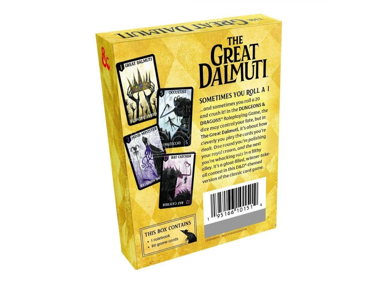 A volte tiri un 1… ea volte tiri un 20 e lo schiacci! Nel gioco di ruolo Dungeons & Dragons, i dadi possono controllare il tuo destino, ma in The Great Dalmuti, si tratta di quanto abilmente giochi le carte che ti vengono distribuite. Un giro stai lucidando la tua corona reale, e quello dopo stai picchiando i topi in un vicolo sudicio.