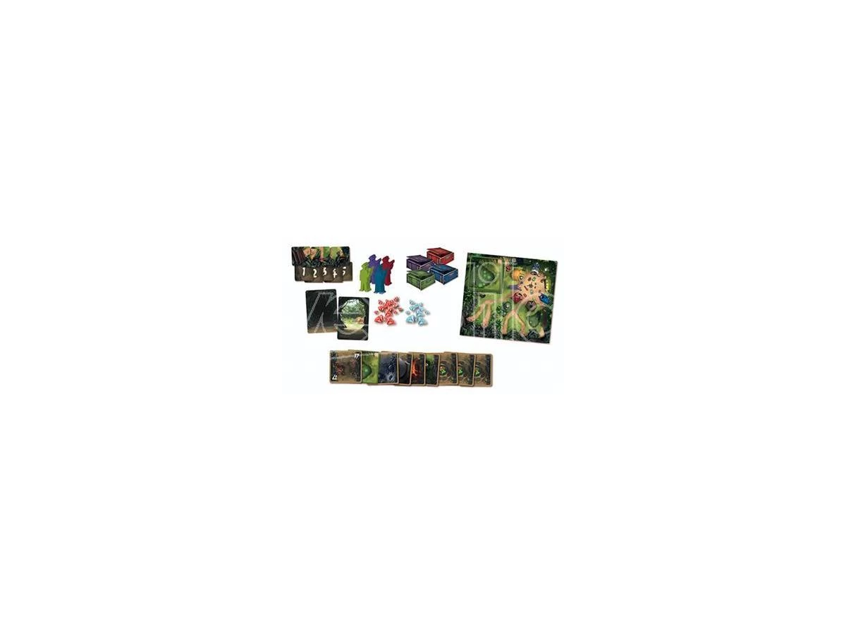 Contenuto: 35 carte spedizione – 16 carte decisione – 1 plancia di gioco – 5 tessere barricata – 8 miniature esploratore – 8 forzieri – 100 pietre preziose – 1 regolamento – 1 carta aiuto.