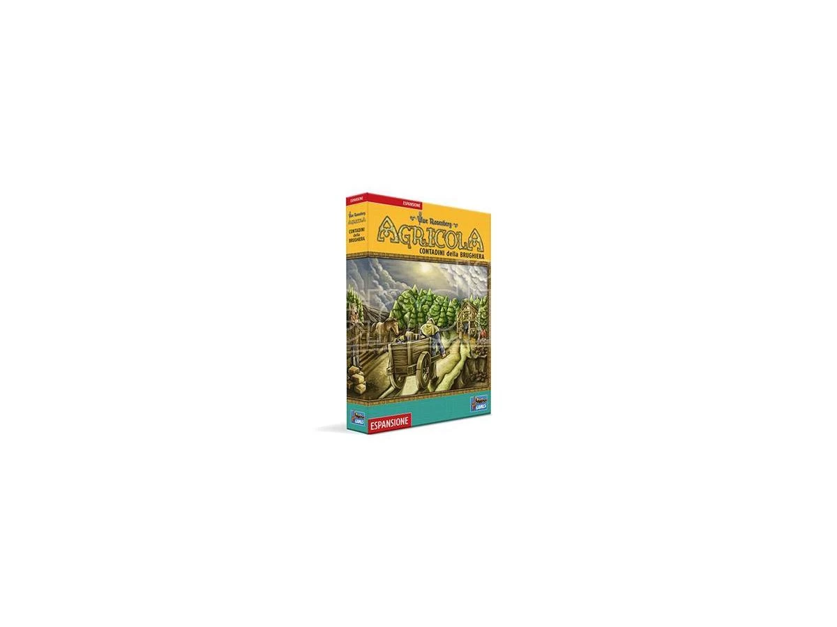 Contenuto: 1 estensione del tabellone di gioco, 1 plancia risorse per le grandi migliorie, 52 tessere foresta/brughiera, 6 tessere stanza di legno/campo, 2 estensioni fattoria, 6 letti in tre parti, 25 cavalli in legno, 10 segnalini “utilizzato”, 2 segnalini speciali, 55 segnalini combustibile, 6 segnalini sostitutivi, 1 carta copertura, 9 carte di partenza, 10 carte azione speciale, 14 grandi migliorie, 117 piccole migliorie, 1 blocco segnapunti, 1 regolamento.