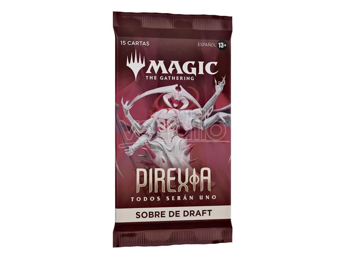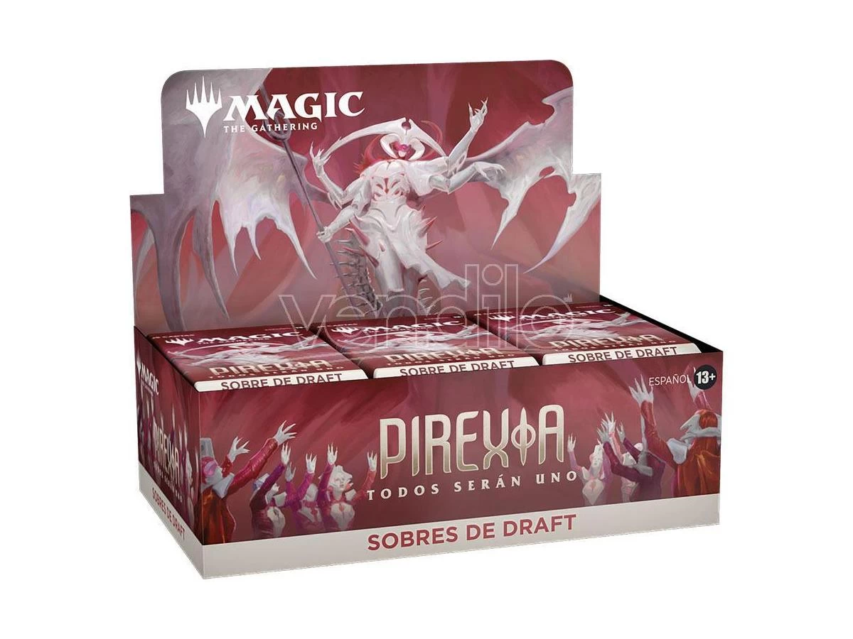 The Phyrexia: All Will Be One Draft Booster Box contiene 36 Phyrexia: Tutto sarà un unico draft booster. Ogni Draft Booster contiene 15 carte e 1 pedina/carta pubblicitaria, inclusa 1 carta di rarità Rara o superiore e 3 Non comuni, 10 Comuni e 1 Terra. Planeswalker mitico senza bordi in lamina tradizionale in