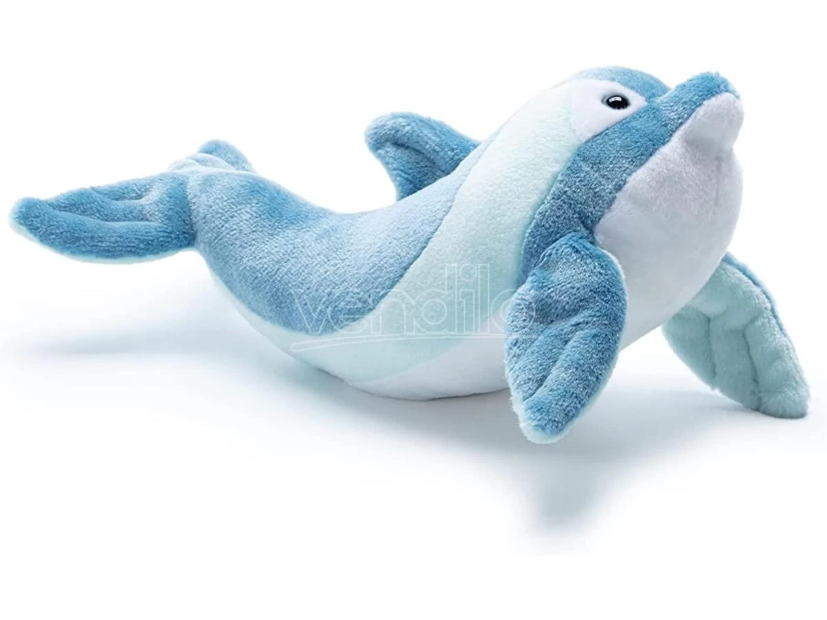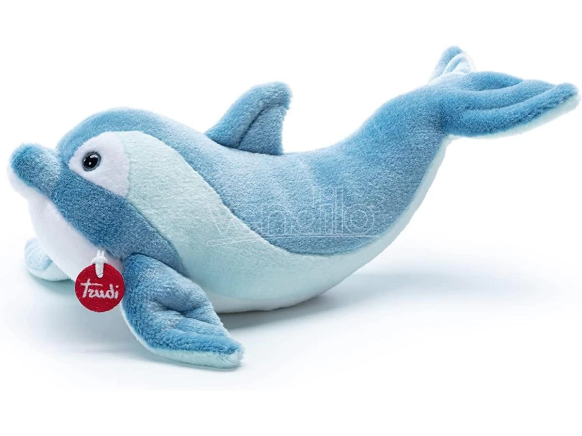 Questo delfino Trudi, riprodotto nei suoi caratteristici toni, è pronto a cavalcare le onde e a divertirsi! La posa infatti è quella di un tuffo nell’acqua, assieme ad un giocoso sorriso e uno sguardo furbo.