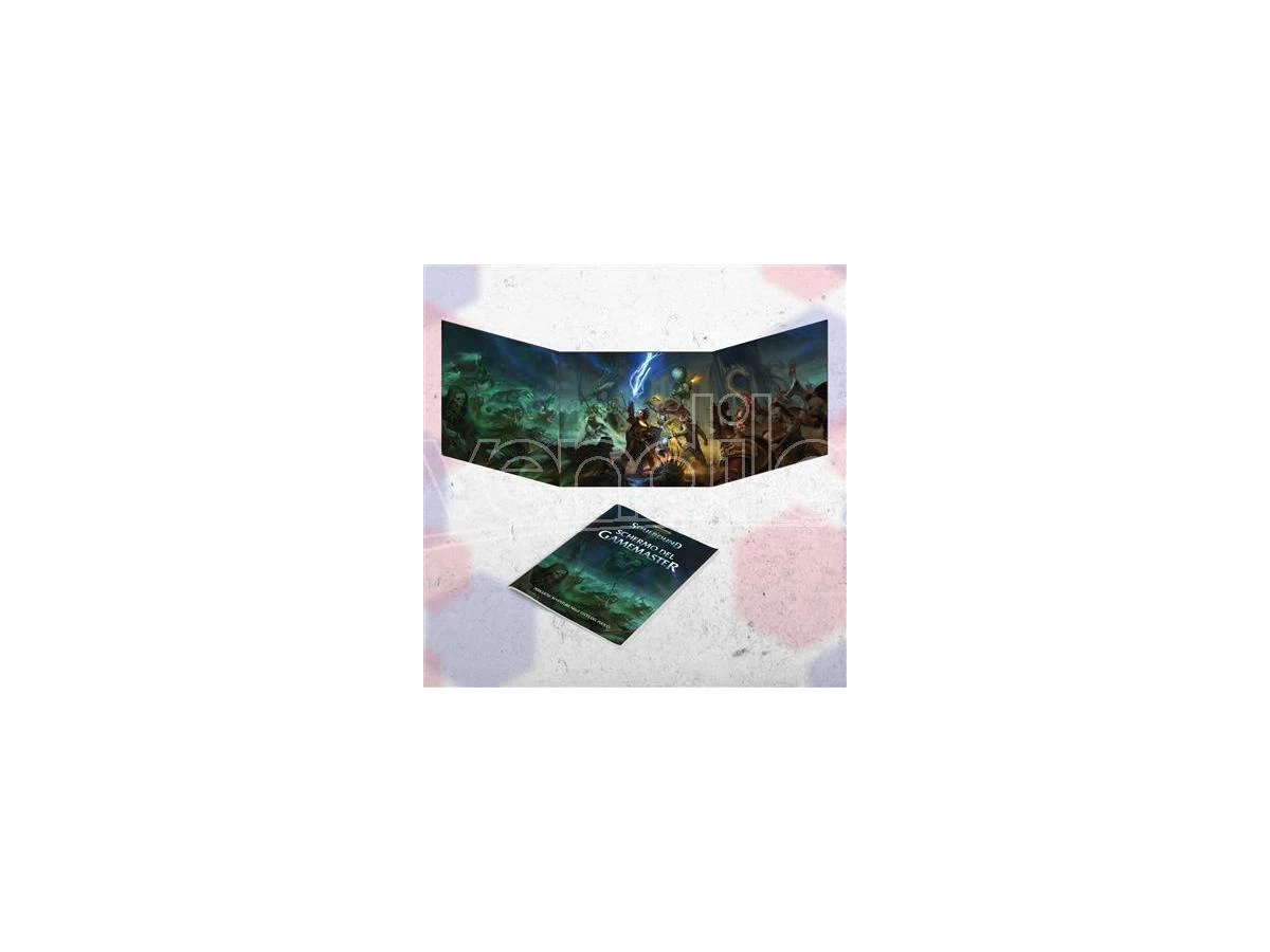 Lo Schermo del Gamemaster è uno schermo panoramico a tre pannelli con una straordinaria grafica raffigurante un gruppo di Vincolati che affronta un assalto di Seguaci del Sangue di Khorne e di Legioni di Nagash. L’interno dello schermo contiene riferimenti immediati delle regole principali, fondamentali per velocizzare le vostre sessioni.
