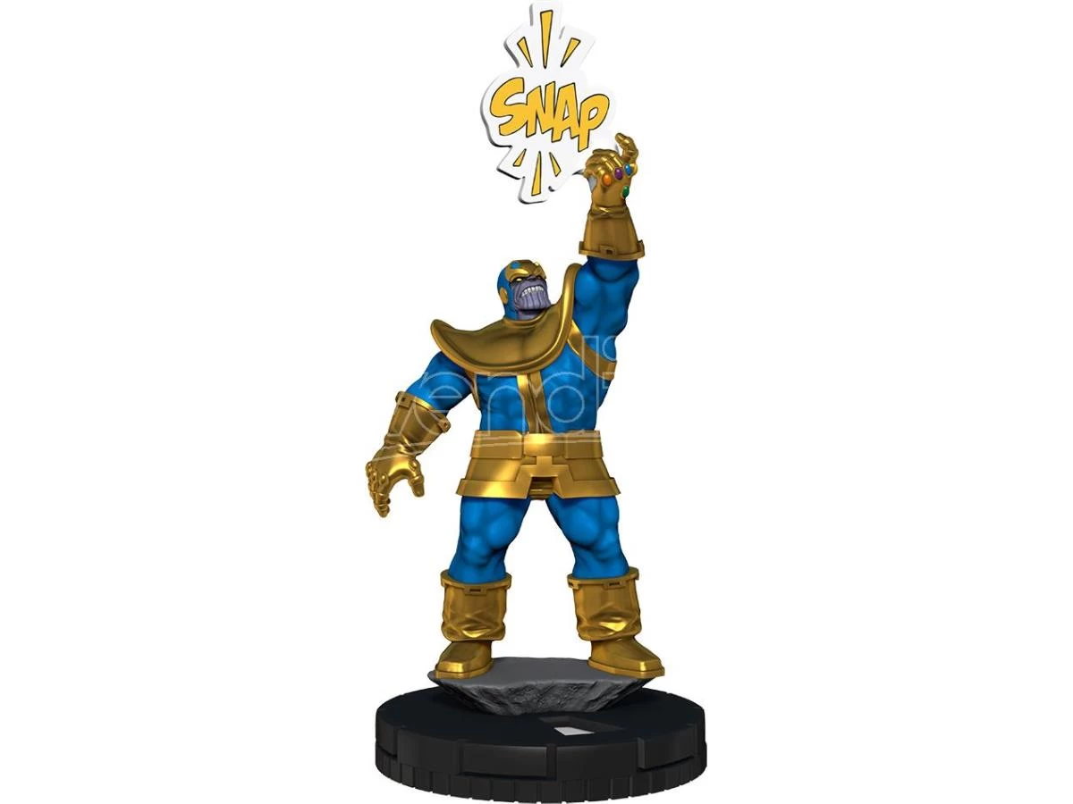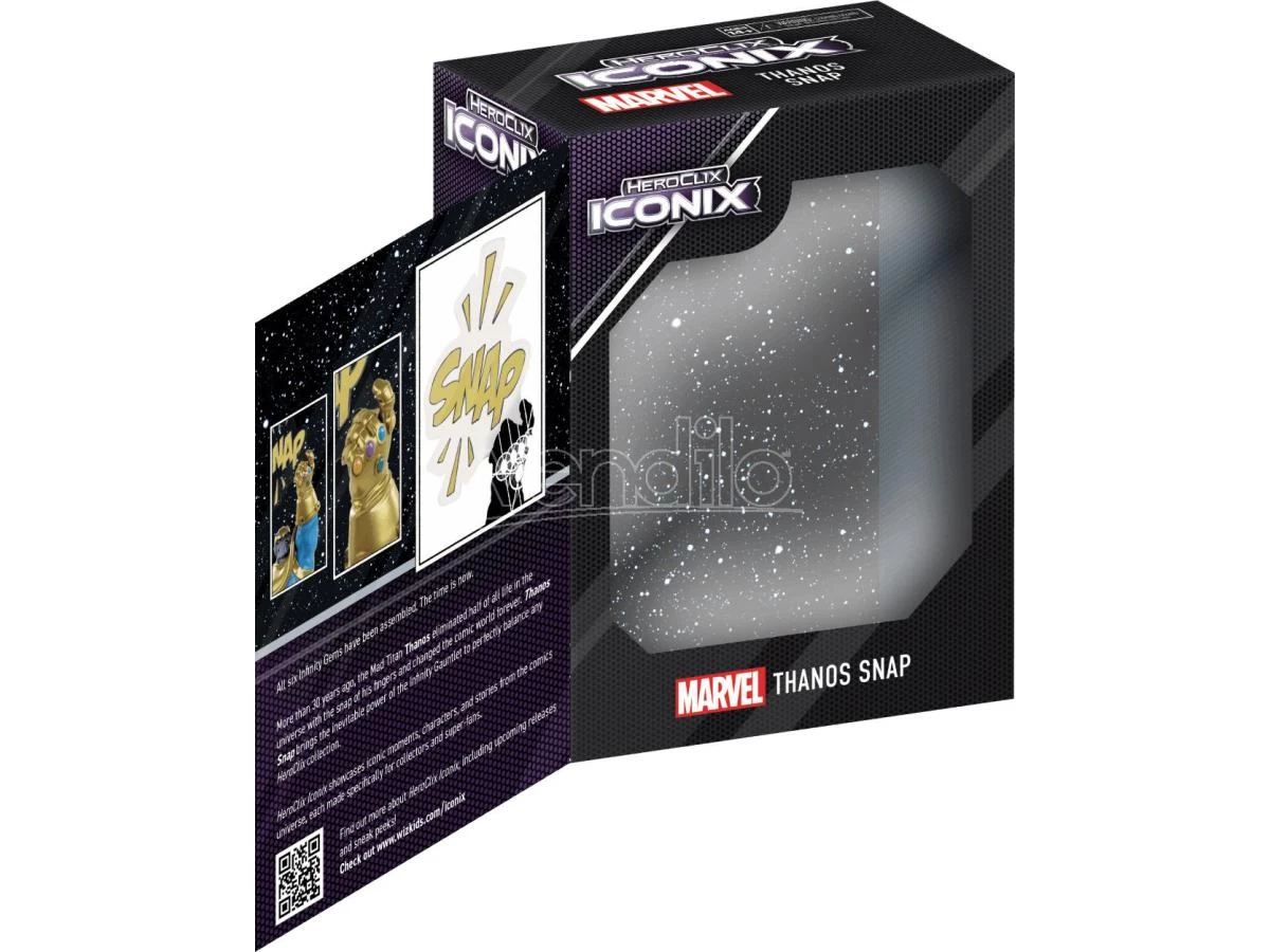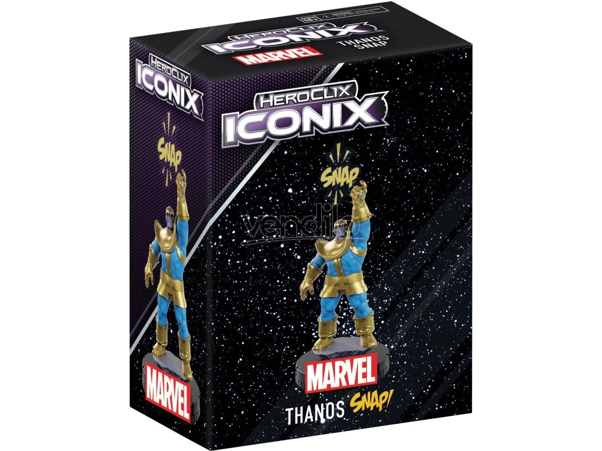 MARVEL HEROCLIXICONIXTHANOS SNAP!Più di 30 anni fa, il Folle Titano Thanos eliminò metà di tutte le forme di vita nell’universo con uno schiocco di dita, cambiando per sempre il mondo dei fumetti. Thanos Snap porta l’inevitabile potere del Guanto dell’Infinito per bilanciare perfettamente qualsiasi collezione HeroClix.I momenti più iconici della storia dei fumetti prendono vita sul vostro tavolo da gioco con la serie HeroClix Iconix, realizzata appositamente per i collezionisti e i super appassionati.Questo prodotto contiene:Una (1) figura di Thanos in edizione speciale nell’iconica posa dello schiocco delle ditaUna (1) scheda personaggio in edizione specialeScatola con display diorama e chiusura a copertina richiudibile